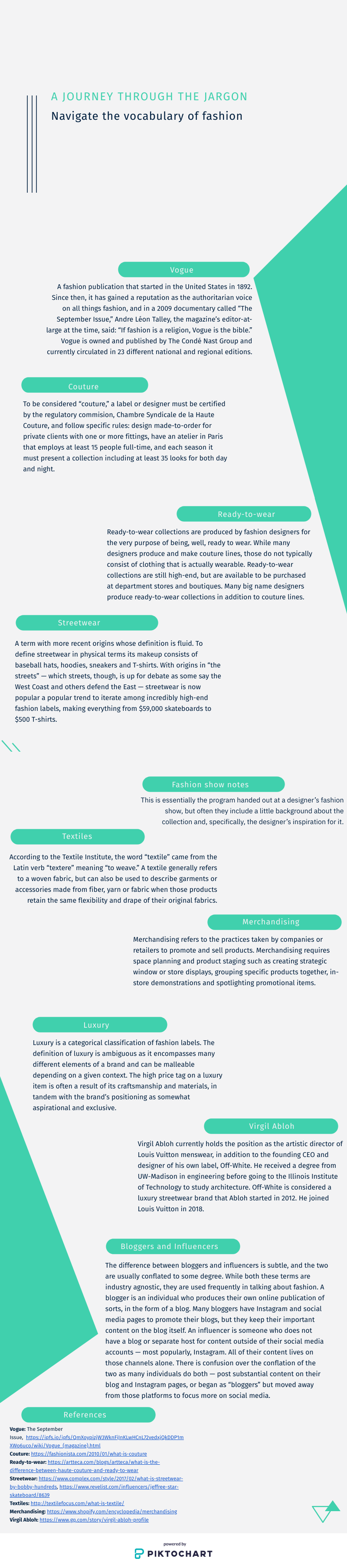 Demonstrating the unique mindset required of a hopeful designer, Jansky likened the idea of pursuing fashion education within the state lines of Wisconsin to a European movement in the ’90s. “Martin Margiela and all those guys,” Jansky says, referring to the luxury designer famous for his eponymous label, “they kind of came about because they were at the Royal Academy over in Antwerp and it was kind of this — I guess, not ‘anti-fashion’ scene, but it was away from the fashion mainstream of Paris and Milan.”